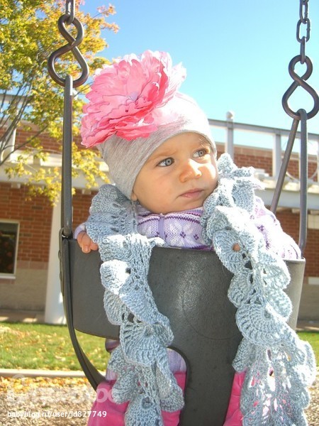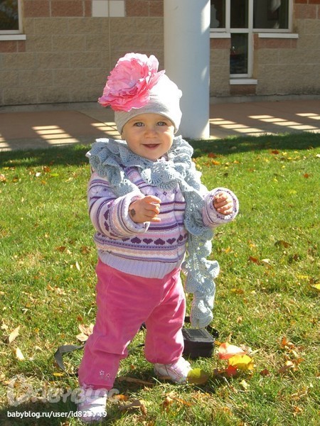 Этого мне было не достаточно и я ще решила сделать сначало цветочек типа броши из ткани, потом передумала и сделала трикотажную шапочку и цветочек , но нужно было сделать законченный вариант я очень долго думала над тем чем бы закончить комплект и на ум пришел шарфик, но опять же хотела оригинальный красивый. А вязать я вообще не умею, но у меня есть одна знакомая рукодельница Елена и пришла ее очередь помочь мне и она связала нам шарфик просто Супер -пупер!