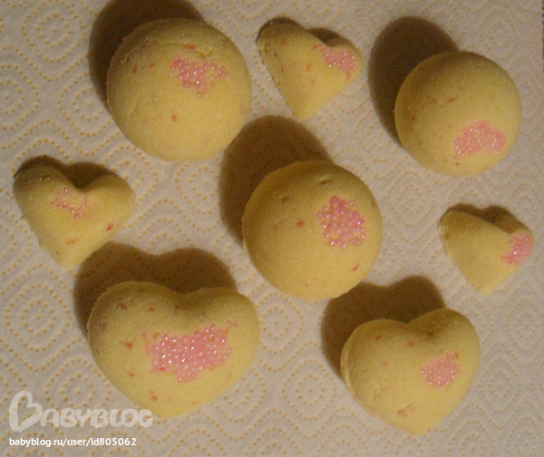 Первый блин)) Получились нормальные мне кажется. Все слипились хорошо, легко и ровненько. Положила на просушку. Но они ещё хрупкие. Когда бомбы начнут твердеть?