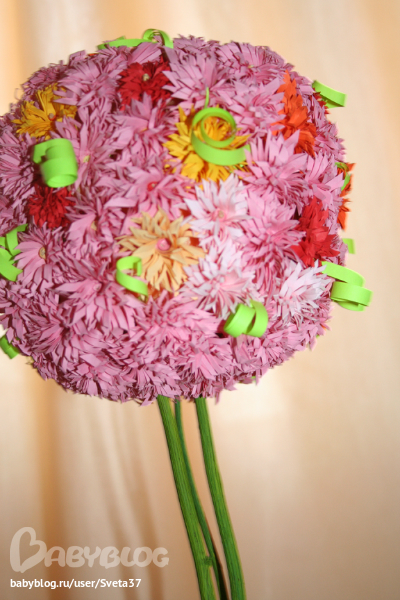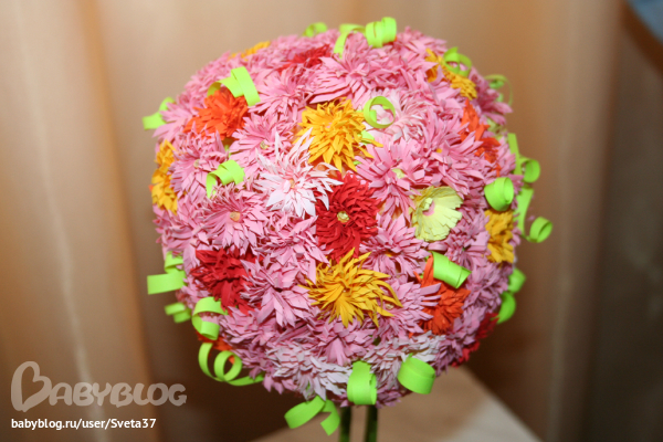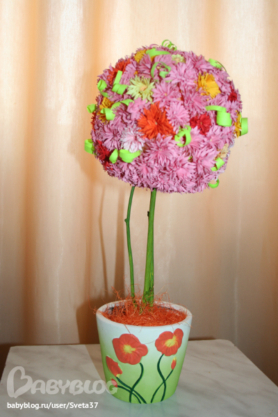 Долго у меня стояла заготовка для дерева, но я никак не могла решить - какие выбрать цветы для него - из лент, из гофрированной бумыги, в стиле квиллинг...