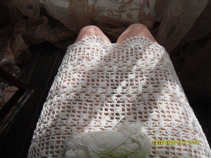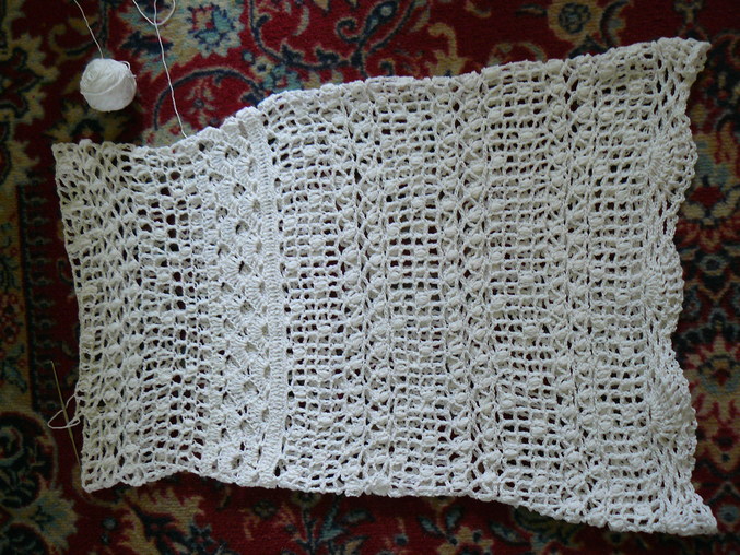 нет,Ну я не быстро!это я своё почти довязанное распустила и вяжу по новой))я делала убавки на сетке,пропускала один квадратик и ссн в следующий вязала,я только парочку убавок сделала...и крючок в области талии взяла №2,а потом обратно тройку,теперь на груди прибавки делаю,чтоб не сильно обтягивало.