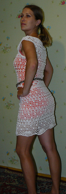 рассмотрела я своё платье,оказываетс убавки у меня перед началом пояса,где заканчивается сетка и начинаются воздушные петли,вот там сделала четыре убавки по краям платья,дырки вроде не большие,даже не заметно.