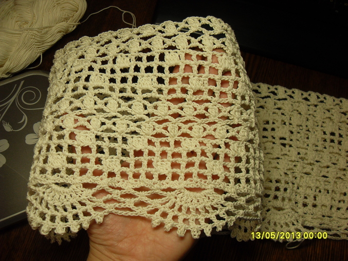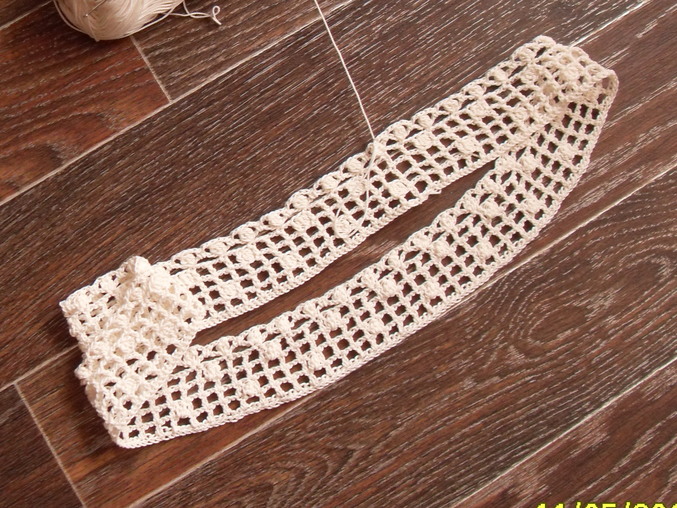 на фото не видно, но где соединяются ряды, между первой и последней расстояние меньше - меньше арок из воздушных петель