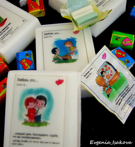 Какие классные! В ванну зайдешь, а там такая прелесть - любофф)Перед новым годом тоже ностальгировала, купила коробочку жвачек Лов ис))