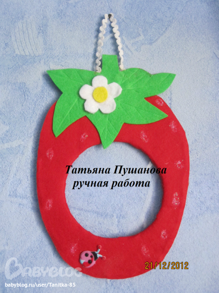Татьянка в Рукоделие 13 лет Мои фетровые фоторамки ) Фетр Фоторамка "Клубничка", для моей сладенькой доченьки. Пока в неё поселили кота ) А это подарок мужу к Дню всех влюбленных, сделал ещё в том году, а подарю уже в этом! Посмотрите еще 20 записей на эту тему Отменить Ответить Angel Здорово! 23.01.2013 Ответить Татьянка Спасибо! Приятно! 23.01.2013 Ответить моя первая работа из фетра) Найди свою половинку Чаты Беременных Выберите чат: Январята-2026 Февралята-2026 Мартята-2026 Апрелята-2026 Майчата-2026 Июнята-2026 Июлята-2026 Августята-2026