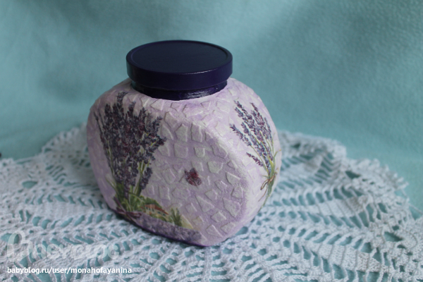 Был такой вариант оформления крышки от банки,но решила сделать так...Крышка будет часто в работе,а потому больше шансов,что в таком оформлении,она дольше сохранится и не потеряет первоначальный вид...Что-то мне так показалось...