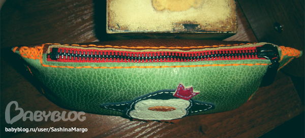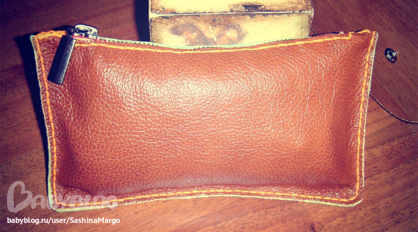 кошелек полностью прошит вручную вощеными оранжевыми нитками(Италия)
