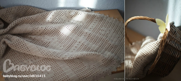 Отлично подойдет для детской кроватки, да и для коляски тоже можно, и как коврик игровой, и на выписку тоже замечательно, в общем, вещь нужная и многофункциональная, опытные мамы подтвердят. Размеры такие: длина 115 см, ширина 75 см. Вязался из мягонькой и воздушной пряжи Vita Baby, крючком №3.