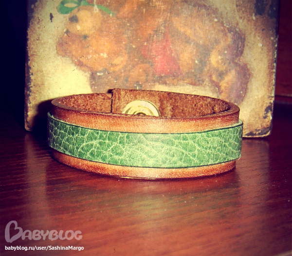 браслет из толстой натуральной кожи,декорирован полоской мягкой кожи