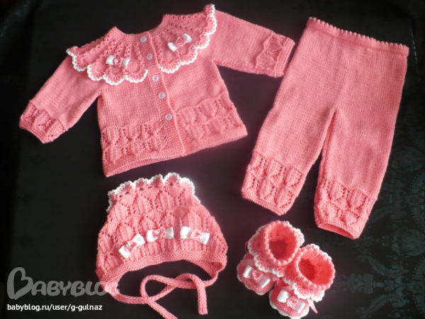 На чепчик набрала 67п, потом прибавила17п, чтобы получилось 8 раппортов рисунка, задняя часть связана платоной вязкой по типу пятки
