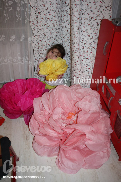 Цветы получились очень нежные и красивые!Размер цветка может быть до 1,2 метра (примерно). Дочка смотрится как дюймовочка :-)