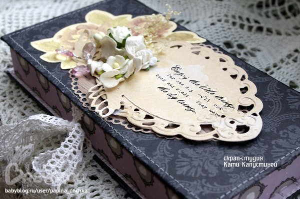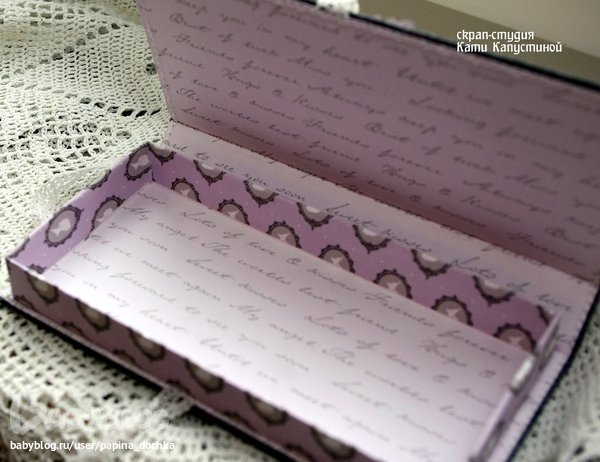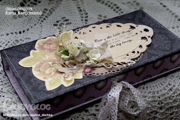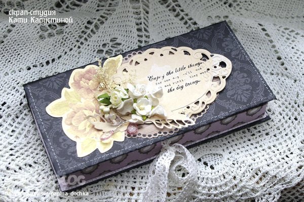 Скрапбукингв дополнение ко вчерашней фоторамке сделалась ещё вот такая коробочка для денежного подарка. делала в первый раз, понравилось :)))