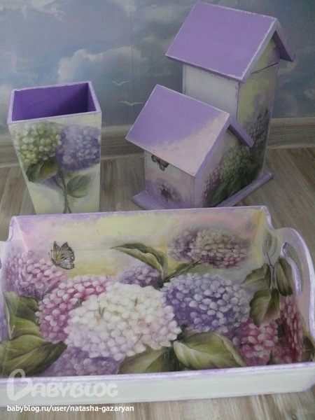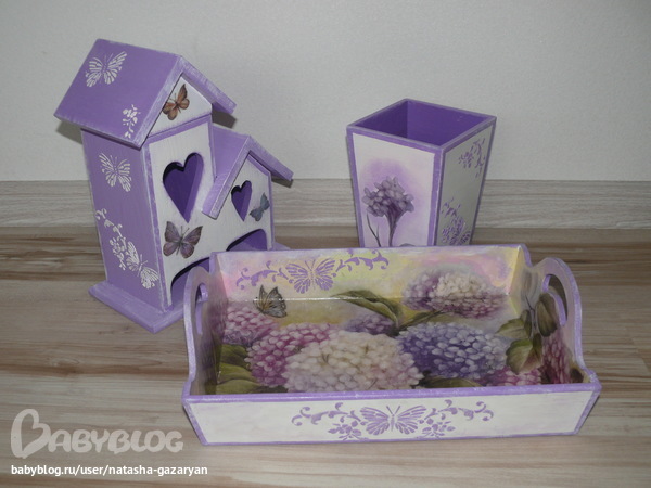 ДекупажНачалось все с двух подносов, которые не получились... ) потом чтение, изучение, просмотр видео, вопросы, потом опять - чтение, изучение, просмотр, вопросы... и дело дошло до такого набора.... потом были еще вопросы и ооооочень полезные ответы здесь на ББ, потом был МК у Александры Palamino и вот что в итоге получилось... Что было - смотрите ниже )