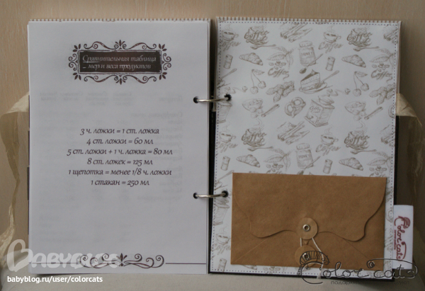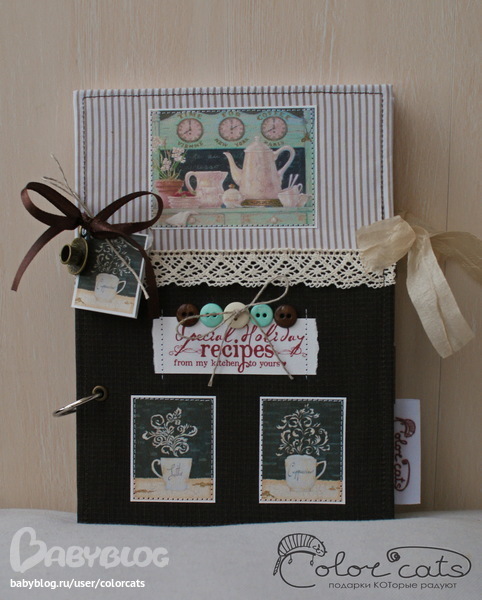 СкрапбукингПора пить кофе))) Так называется моя очередная кулинарная книга. Картинка с часиками у меня уже давно, все лежала и ждала своего часа))) Книга для записи кулинарных рецептов, формат А5, около 200 страниц. Внутри есть четыре вкусных раздела: "Закуски", "Горячее", "Десерт" и "Разное". На последнем форзаце крафтовский конвертик для вырезок и дополнительных рецептиков. И еще есть таблица мер и весов.