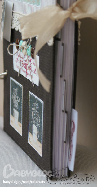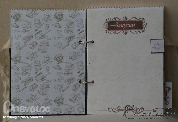 очень красивая кулинарная книга! тоже хочу попробовать к 8 марта подарок маме и свекрови сделать:) А вы листики вручную резали для блокнота? У вас какой резак?