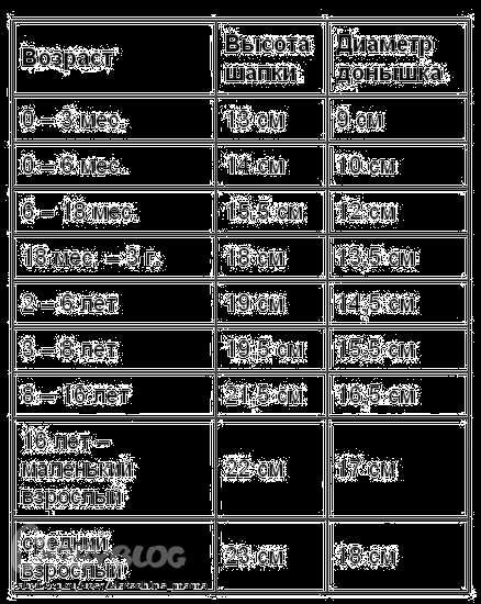 Девочки выручите пожалуйста !!! нужна табличка по глубине шапочек
