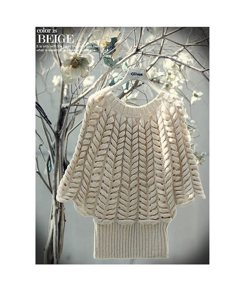 Это техника "Азиатский колосок", используется частичное вязание. Основное полотно с косами вяжется слева направо (я так понимаю без убавок и прибавок), резинка и горловина пришиваются в конце. Лёгкая модель, но очень долгое будет исполнение - каждое "зёрнышко" колоска в среднем состоит из 10 рядов и 3-6 петель в зависимоти от пряжи.