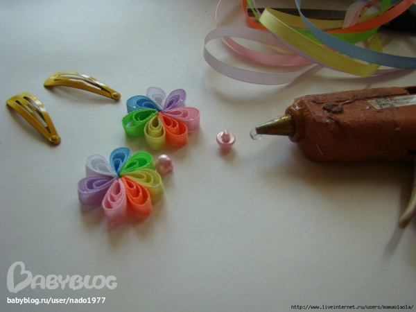 4. серединка в цветочек пуговка или стразы, заколка основа и клей чтоб все это склеить.