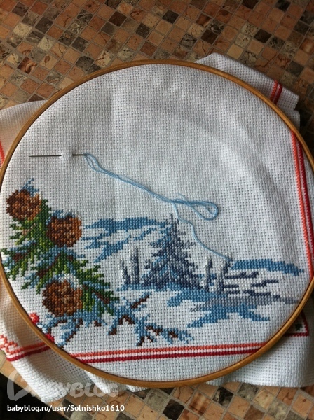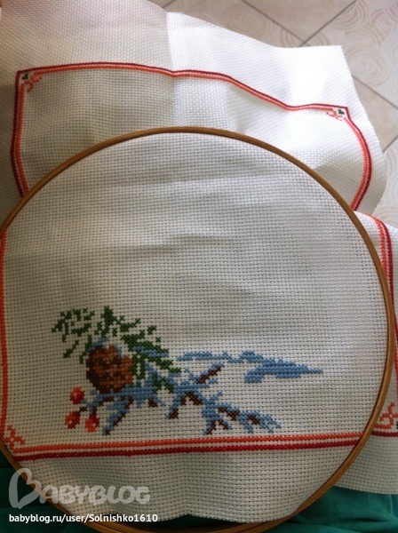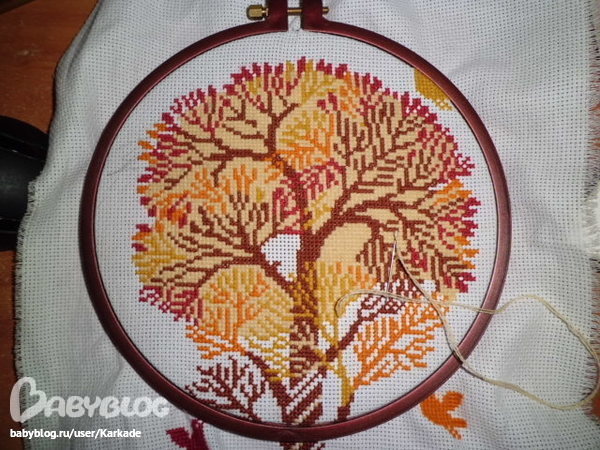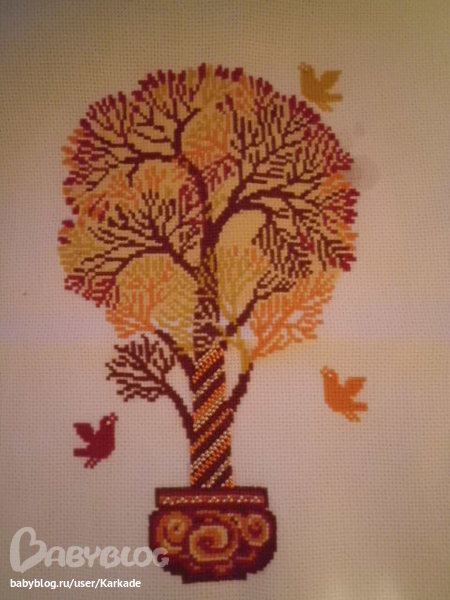Дерево совсем не вышивала, так как оно осталось на работе.