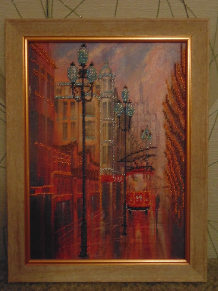 девчата , привет, я забрала свой трамвайчик из багетки, очень нравится) только сфоткать никак нормально не получается... покрыла лаком для акриловых красок, довольнаяяяяя) когда свет падает, очень красиво переливается бисер