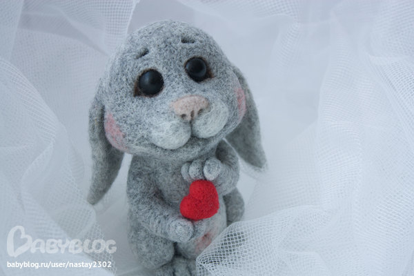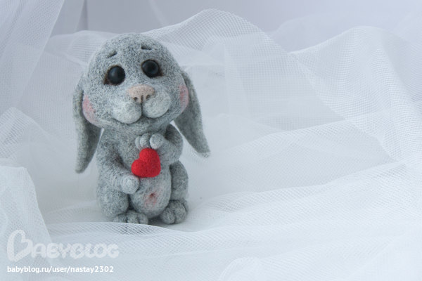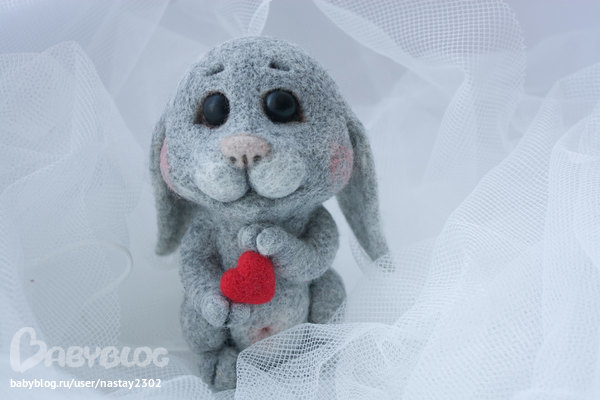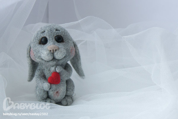 Фелтинг (валяние шерсти)У маленькой зайки в этом году очень ответственная миссия, она спешит поздравить всех с Днем Святого Валентина и подарить кусочек своего теплого сердечка всем-всем на земле!