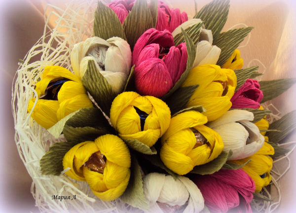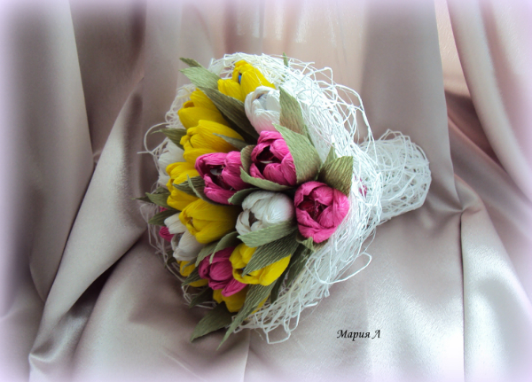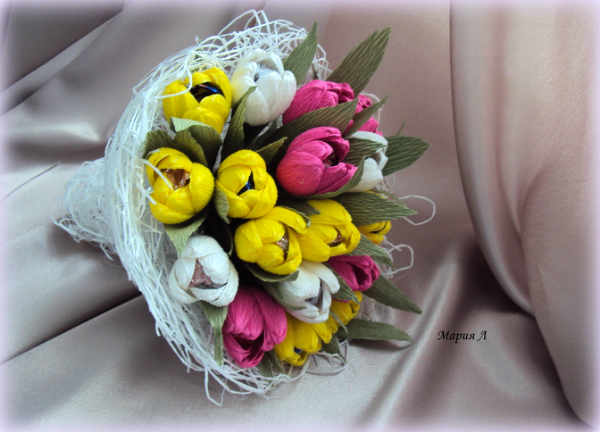 Мария, какие чудесные крокусы! Очень аккуратный, мне кажется прямо ювелирый букет!!!! Присоединяюсь к вопросу Лены: если не секрет, это готовый каркас или сами формировали?