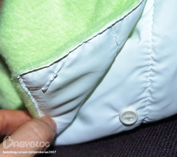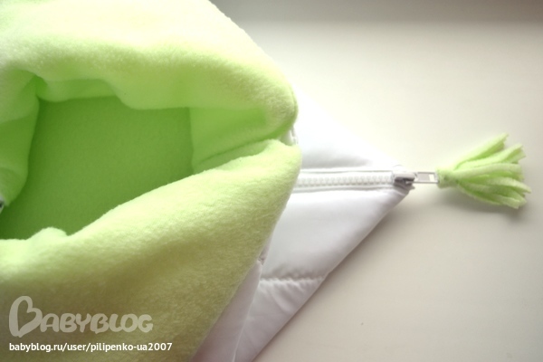 В принципе, наверное, можно как-то утеплить этот карман. А можно сделать вообще без него, вшить внизу молнии. Но если вы ожидаете малыша в мае, то не заморачивайтесь по поводу утепления, достаточно будет флиса и верхней ткани, а можно сделать дополнительную съемную вставку на первое время.