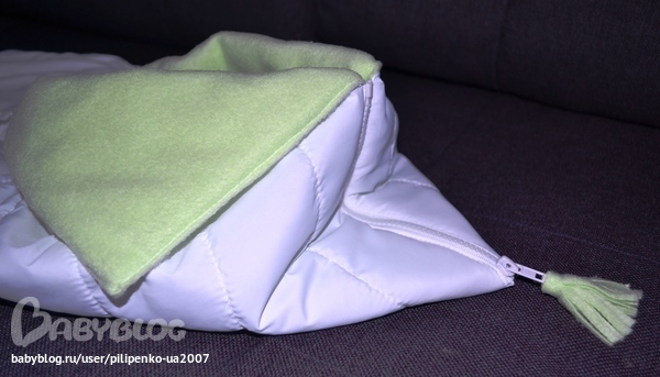 Спасибо! Он совсем просто шьется, а получается интересно. Не знаю, пригодится ли он нам как одеяло в последствии, а конвертиком послужит пару месяцев, апрель и май. Можно на карман сделать аппликацию из страз в виде термотрансфера, что-то неналяпистое.
