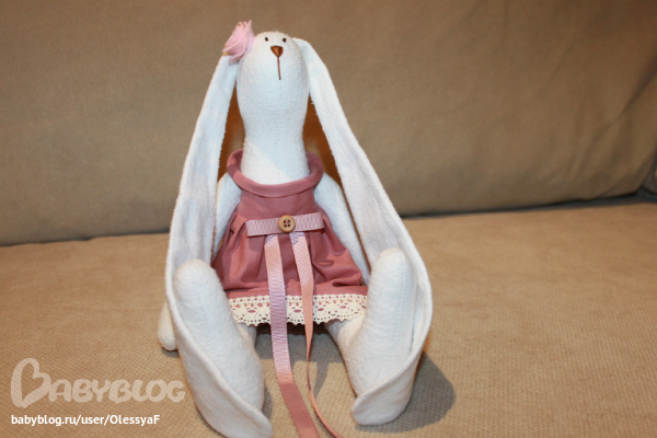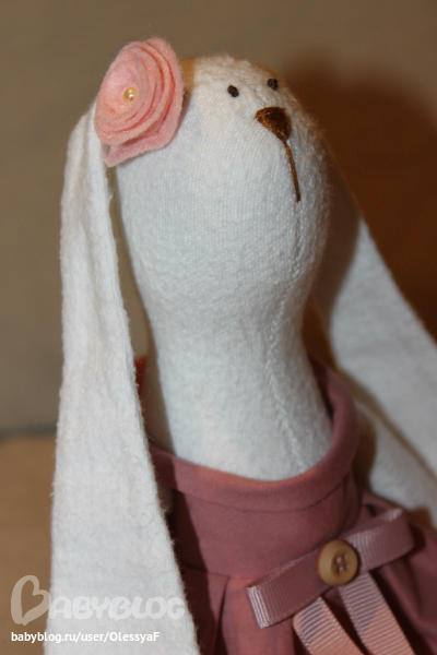 Олеся, зайчиха просто чумовая! Именно после Вашего поста тоже решилась сшить такого зайца. Вчера перелопатила весь интернет. Возникли вопросы. Если не сложно, подскажите. Я так поняла существуют выкройки сидячего и стоячего зайца. У Вас какой? Сколько см в высоту? И как Вы пришили "руки"? Я не вижу там пуговичек сбоку. Может у Вас есть МК, по которому шили. Очень прошу помочь. Спасибо.