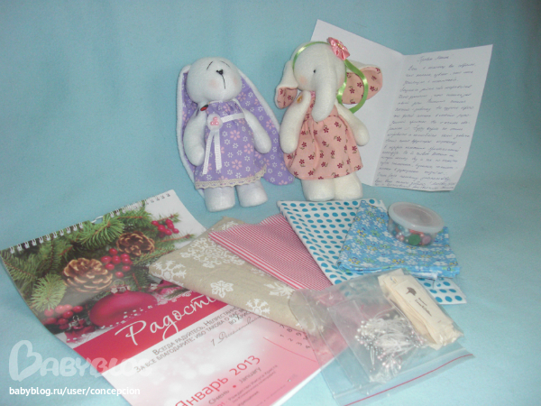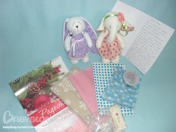 Так приятно было получить посылку с чудесными игрушками, тканями и мелочами для рукоделия, а какая замечательная повязочка для доченьки. Вообщем, что рассказывать, смотрите!))