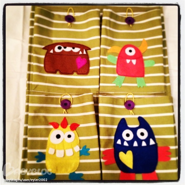 Шитье одежды, выкройки, ремонт одежды, шторы, швейные машины (уже приобретенные)Ужасно бесивший меня пакет с вещами в шкафчике (в котором все в кучу) + поиск вдохновения среди рукодельниц = "кармашки-монстрики"