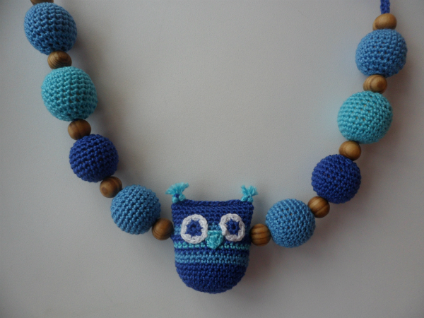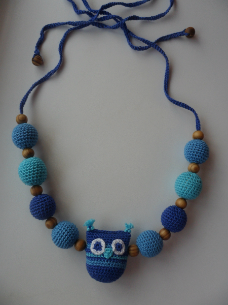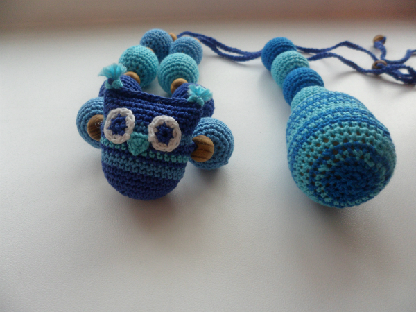 Очаровательный совенок с удовольствием подружиться с вашим малышом. Масса тактильных ощущений для маленького первооткрывателя : бусины разного диаметра(маленький -большой) , структуры(бусины гладкие и вязаные), щупаем (сова - мягкая, бусины -твердые). Изучам "глаза-носик". Обвязанны можжевеловые бусины, обладают антибактериальным эффектом. Отличный подарок для мамы и малыша.Цена 500 руб+почтовые расходы