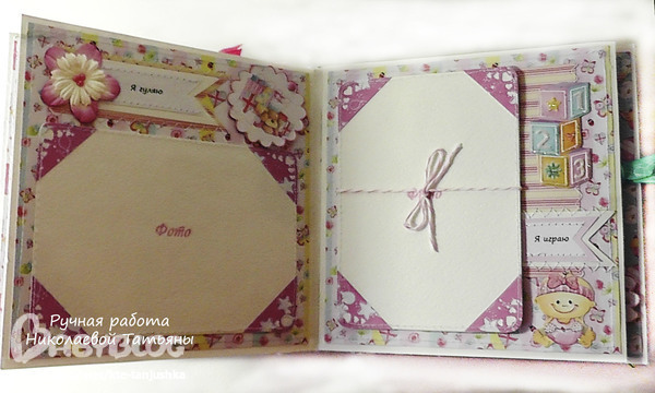 Я с удовольствием сделаю для ваших малышй первый альбомчик, ведь так хочется чтобы он был самым лучшим... старничка о беременности, снимки УЗИ, тест с двумя полосочками, бирочка из роддома, первые фото малышей, их достижения и успехи, первая улыбка, первые шаги... все это так хочется оставить в памяти, ведь детки тааак быстро растут, все это я с радостью помогу вам сохранить...