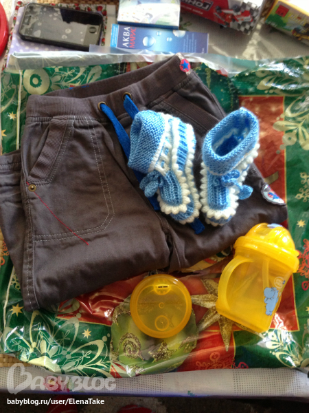 Стася, а я и не знала, что ты вяжешь, пинетки такие суперские, как раз сейчас будем носить, пока холодно, но ножками еще не ходит, на улицу будем одевать. А штанишки уже пойдут на следующий год, пока большие. Из поильничка пьет уже, как раз научился из трубочки пить. Спасибо большое.