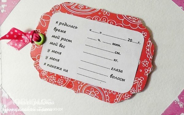 Вторая страничка - я родилась, есть тег, куда можно записать все о рждении малышки