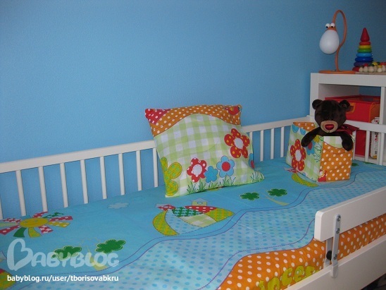И наконец-то сшила ребенку постельное белье, а то кроватку-то поменяли, а стелить приходилось по прежнему пеленки :)