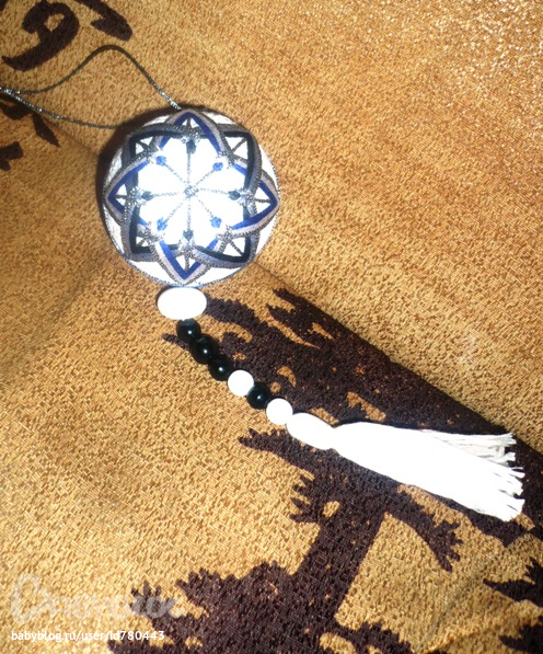 Молодец, у тебя очень красивый темари получился))) а мне вот узор "хризантема" не удался и я расстроилась... сейчас думаю, может я слишком тонкие нити для него взяла? попробую как ты мулинешками шить. а кисточка вообще волшебная! я балдею от всяких бусинок и пр.))) очень стильный темари получился, действительно мужской))) и наверное я тоже кое-кому из друзей-подруг в машинки такие сделаю))) и раньше подумывала, но всё лень было. а увидела в воплощенном виде и загорелась)))