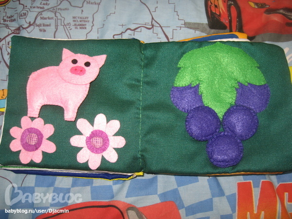 Насмотелась вышей красоты и своей доце захотелось сшить книжечку. Ну не столько захотелось сшить, сколько чтоб у нее была книжечка. Честно говоря я не люблю шить, совсем. Да и машинки у меня нет. Поэтому и книжечка получилась не такая окуратная как хотелось. И конечно ее не сравнить со многими девочками которые тут шьют. Но главное доце она нравиться.