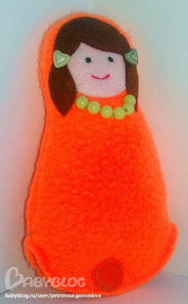 Идея матрешек-застежек не нова, но мне нравится. Прошу любить и жаловать))) Матрешки сшиты по принципу мешочка с подкладом (флис/хб), спинки укреплены дублерином, голова сформирована из синтепона, им же проложен животик, у малютки в животике гранулят, лица и прически - фетр.
