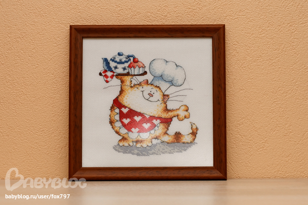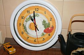 Чуть не забыла. Совсем недавно моя кухня наконец обзавелась часами. Первый опыт по самостоятельной натяжке работы не сильно порадовал, но в целом, я была довольна