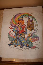 Одна из последних работ "Клоун" делалась долго и мучительно. К сожалению, фото только самой вышивки, которая впоследствие была оформлена в мешок для подарков (фото не сохранилось, а сам мешок поселился в Екатеринбурге)