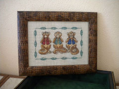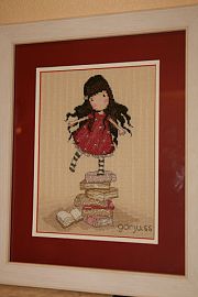 После того как отшила больше половины работы, дошло, что цветочков-то на схеме четыре штуки... Пришлось срочно приделывать пятый (торчит вверху как заячьи уши). Срочно, потому что на очереди была следующая работа, которую я хотела закончить до того, как отправлюсь в роддом. Картинка для моей младшей -Настены