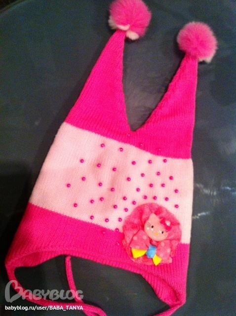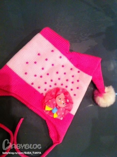 Леночка, здравствуй! Ваша с помпонами из 100% шерсти. Она тонкая, но в ней спокойно можно водить ребёнка и в -10 без капюшона, но при +7 в ней жарко, а в этой комфортно ранней весной и поздней осенью. кстати, Машка в красной из этой шапочной компашки уехала в Яхонты)))