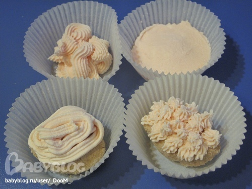 Две дальние розетки без "теста", его не хватило... И, наверно, надо было меньше сухого молока - "крем" застыл в насадках, поэтому последние пралинешки просто выложила.