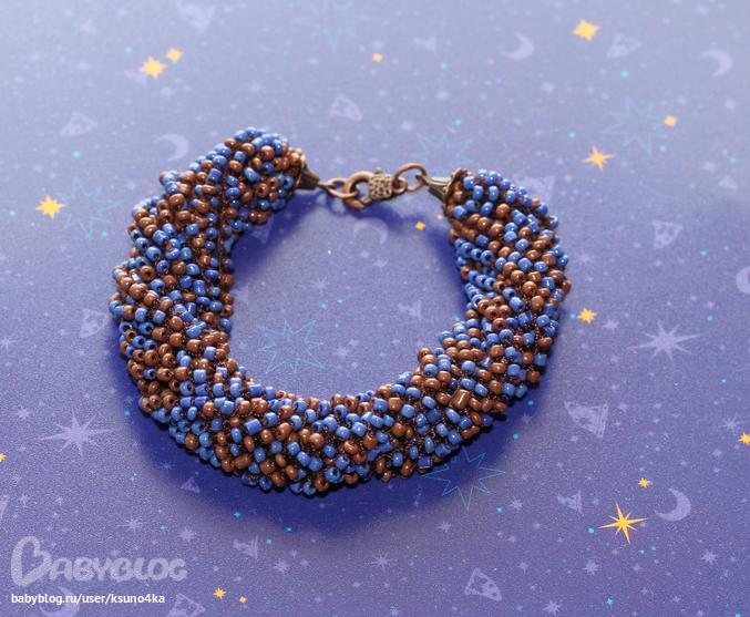 Браслет "Гармония" сине-шоколадного цвета, выполнен из бисера, хлопковой нити, фурнитуры по медь. Длина регулируется количеством оборотов.