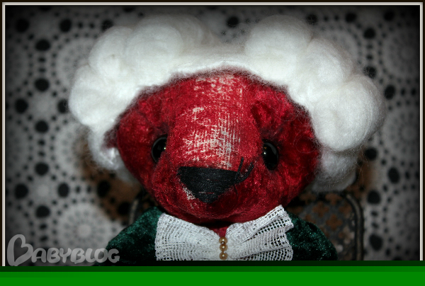 Мишка сшит из винтажного плюша (старинный) потертости натуральные, голова на двойном шплинте , лапы на одинарном. Глазки стеклянные. Брошь тоже старинная- 60г. Парик свален из шерсти, снимается. Рост 29 см.