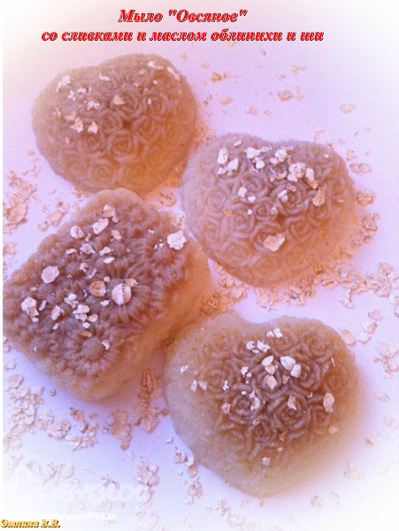 Мыло с овсяными хлопьями. Свойства: Уникальные свойства овсяных хлопьев хорошо известны в медицине и косметологии. Они усиливают регенеративные свойства кожи, препятствует образованию морщин.А так же идеально подходит как для детей, так и для взрослых с нежной и чувствительной кожей.