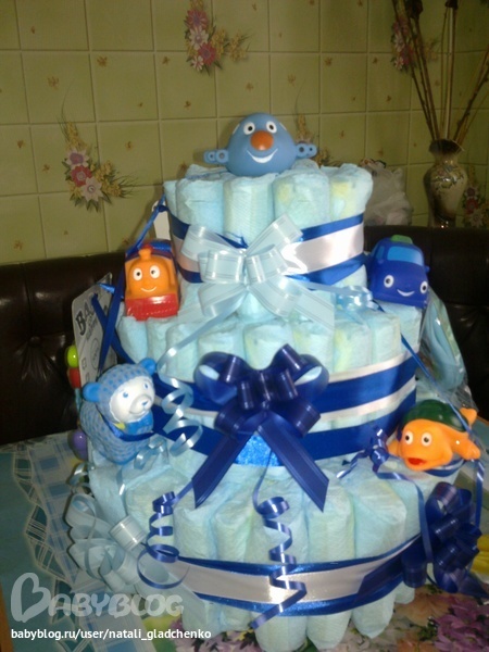 Наталия в Рукоделие 13 лет Тортик для племянника Вот такой тортик появился по случаюэто в процессе, ушла упаковка подгузников 96 шт, каждый заворачивала в салфетку. Вот что получилось Посмотрите еще 20 записей на эту тему Отменить Ответить Екатерина а сказите пожалуйста а где вы упаковку покупали? 04.02.2013 Ответить Наталия Упаковку и ленты (банты) бумажные покупала в хозяйственном магазине (в которых пакеты, клеенку продают) 04.02.2013 Ответить Екатерина Спасибо большое!!очень красиво!!! 04.02.2013 Ответить Бутербродики Вязаные аксессуары на заказ спицами и крючком Чаты Беременных Выберите чат: Январята-2026 Февралята-2026 Мартята-2026 Апрелята-2026 Майчата-2026 Июнята-2026 Июлята-2026 Августята-2026