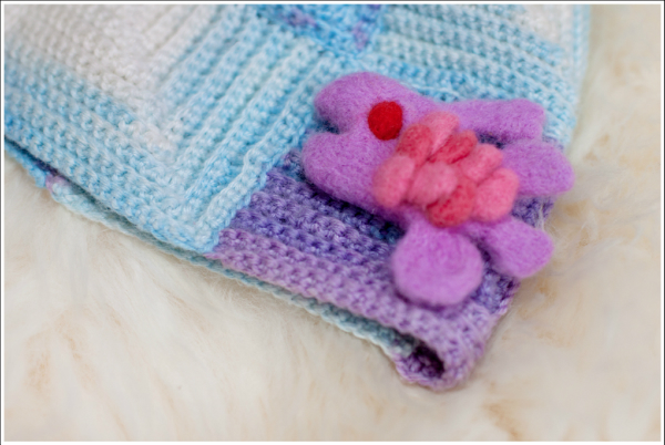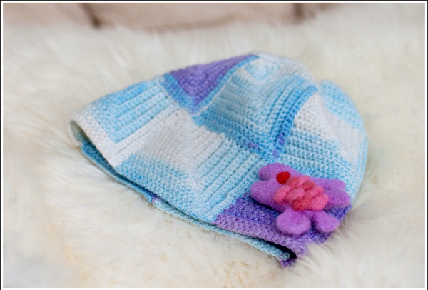 Забавная шапка для малышки, связанная из турецкой пряжи секционного крашения Alize baby wool (40% шерсть, 20% бамбук, 40% акрил) крючком техникой безотрывного вязания. В процессе вывязывания квадратов шапка приобретает диагональное гофрирование, что придает ей дополнительный стрейчевый эффект. Украшена шапкаваляной брошью в виде фантазийной, немного сказочной рыбы с чешуей. Возможно исполнение в любом другом цвете и размере
