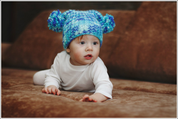 Детская шапочка, подходит как для фотосессий, так и для повседневной носки. Выполнена спицами из мягкой акриловой пряжи Olimpia pompea производства Греции. Украшена помпонами.