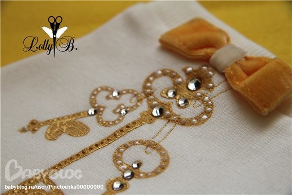 Это краска декола через трафарет, золотой контур по ткани и жидкие жемчужины - тоже контур и стразы))